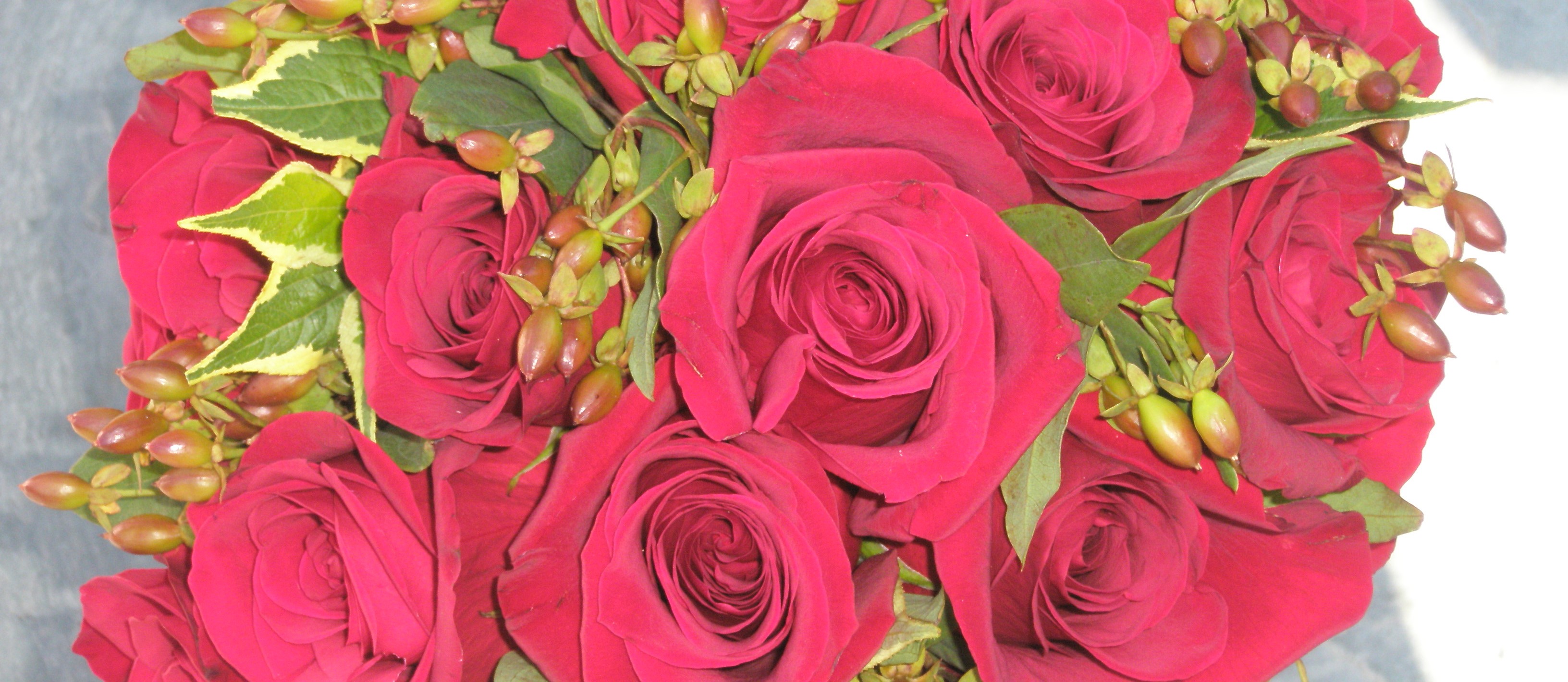 This was such a great wedding to design flowers for. The bride let me pick whatever flowers I wanted! We decided that she liked red roses so we kept it simple adding hypericum berries and some greenery. But what made it really great was that the Bride was marrying my Dad! This wedding took place a few years ago, and we have loved having Kris in our family.